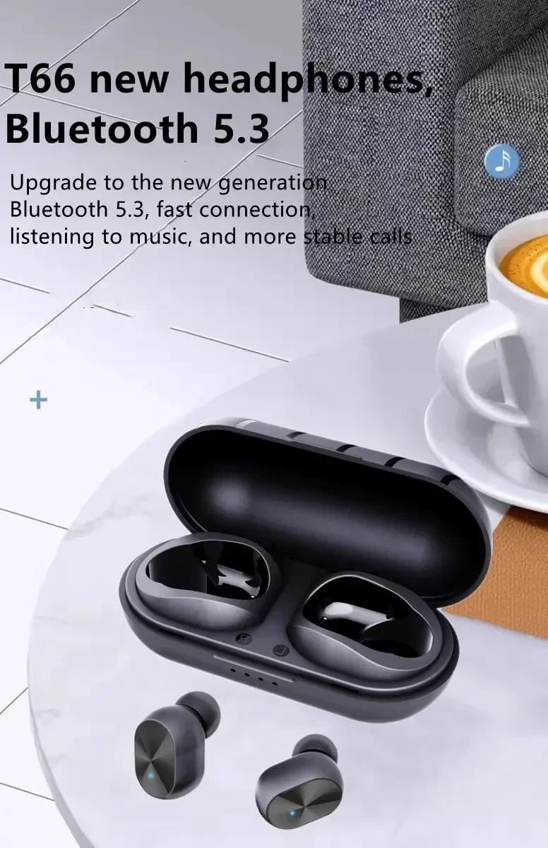 T66 TWS Wireless Headphones 5.3 Bluetooth Earbuds Waterproof Earbuds